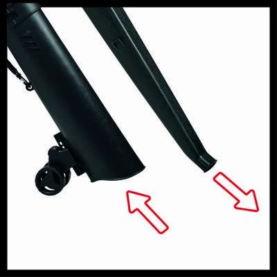 - Le passage de la fonction Aspiration (tube large inclus de série) à la fonction Soufflage (tube étroit également inclus de série) s’effectue sans outil.