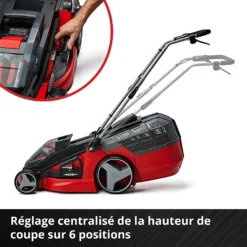 - Réglage de la hauteur de coupe : 25-75 mm ; 6 paliers