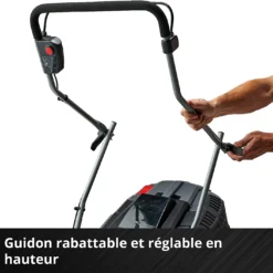 Enfin, son guidon rabattable tout en longueur et réglable en hauteur sur trois niveaux autorise d’adapter la tondeuse aux utilisateurs de toutes tailles, et ainsi d’être rangée dans un espace des plus restreints.