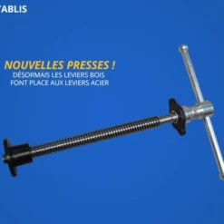 - À l’avant, une presse à serrage verticale. Système de presse à débrayage automatique (approche instantanée du mors par une simple poussée).