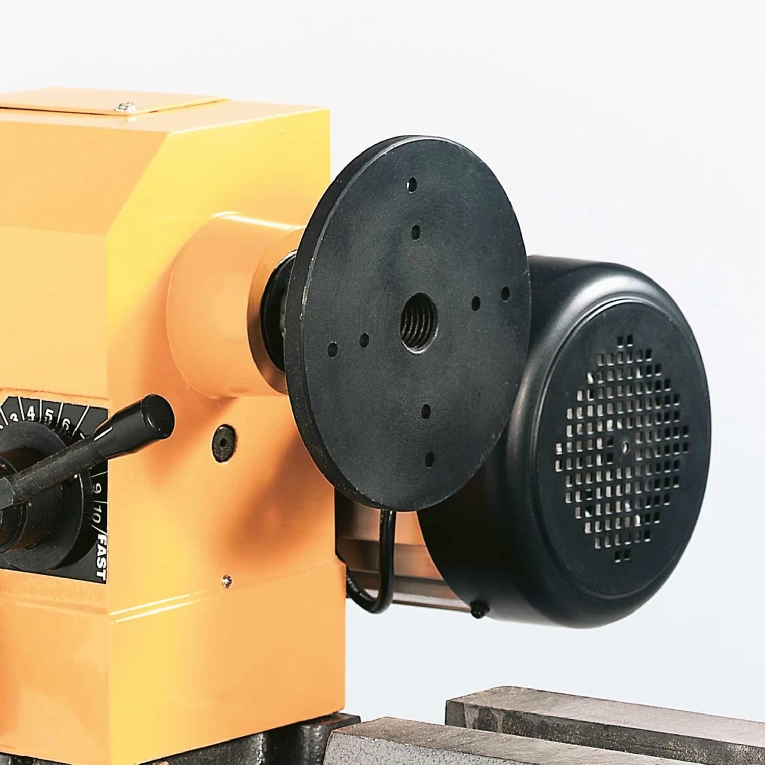 - Vitesse variable réglable par changement mécanique des courroies.