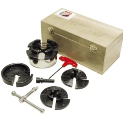 - Attention : pour une compatibilité et sécurité entières, veillez à n’utiliser que les mandrins 4 mors DP65 ou DP95 sur ce tour, seuls compatibles.