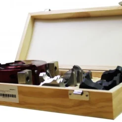 Cet assortiment porte-outil en hauteur 60 et ses 6 fers différentes moulures adaptés est un petit kit idéal pour les travaux de languettes et rainures à la toupie.
