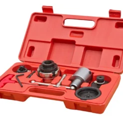 Poupée fixe et poupée mobile percées à 9,5mm pour pouvoir déloger les outils (chasse-pièce fourni), et pour le passage d’une mèche ou d’un fleuret de perçage.