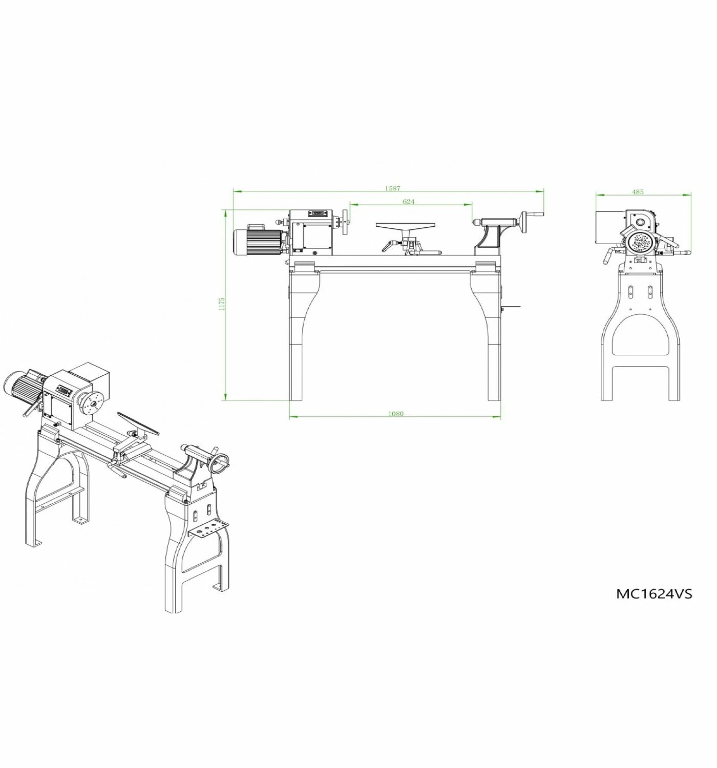 Tour à bois 620 mm avec variateur de fréquence – MC1624VS | HOLZPROFI MAKER
