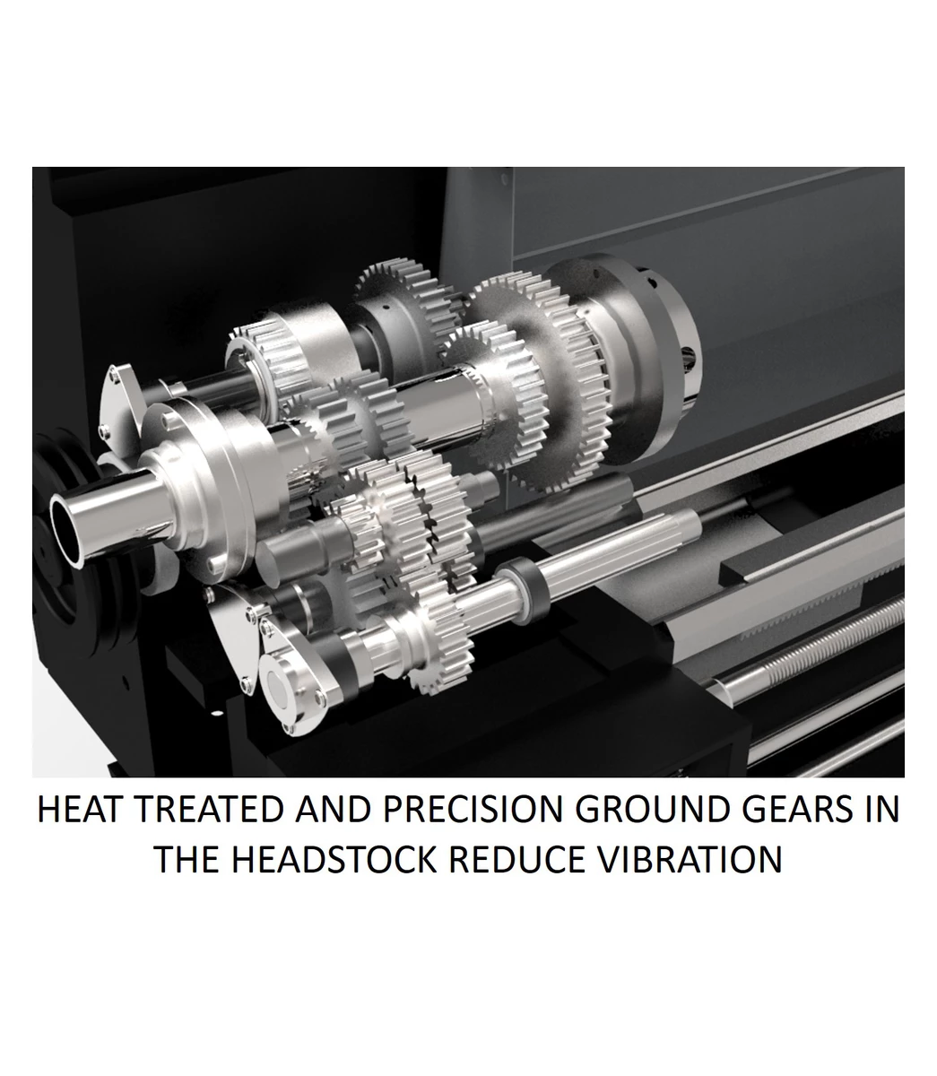 - Engrenages trempés et rectifiés dans la poupée fixe qui réduisent les vibrations et la déviation