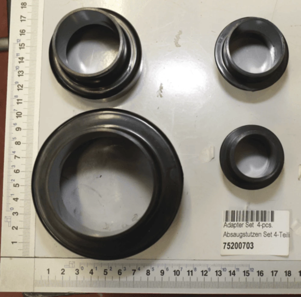 Jeu de 4 buses d’aspiration pour le raccordement des appareils électroportatifs dont voici les diamètres extérieurs (et intérieurs) :