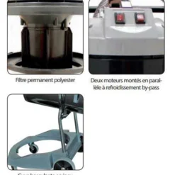 LEMAN – ASP701 Aspirateur Cuve Inox 70 Litres Utiles 2000W | Aspirateur Puissant pour Bâtiment | Haut Débit