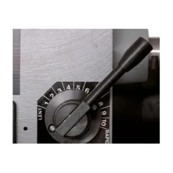 - Tête en fonte d’acier avec carrossage métallique, positionnable à 90° pour usiner les pièces de grand diamètre hors du banc, et à 180° pour avoir une position de tournage plus confortable en utilisant le support d’outil sur l’extension de banc.