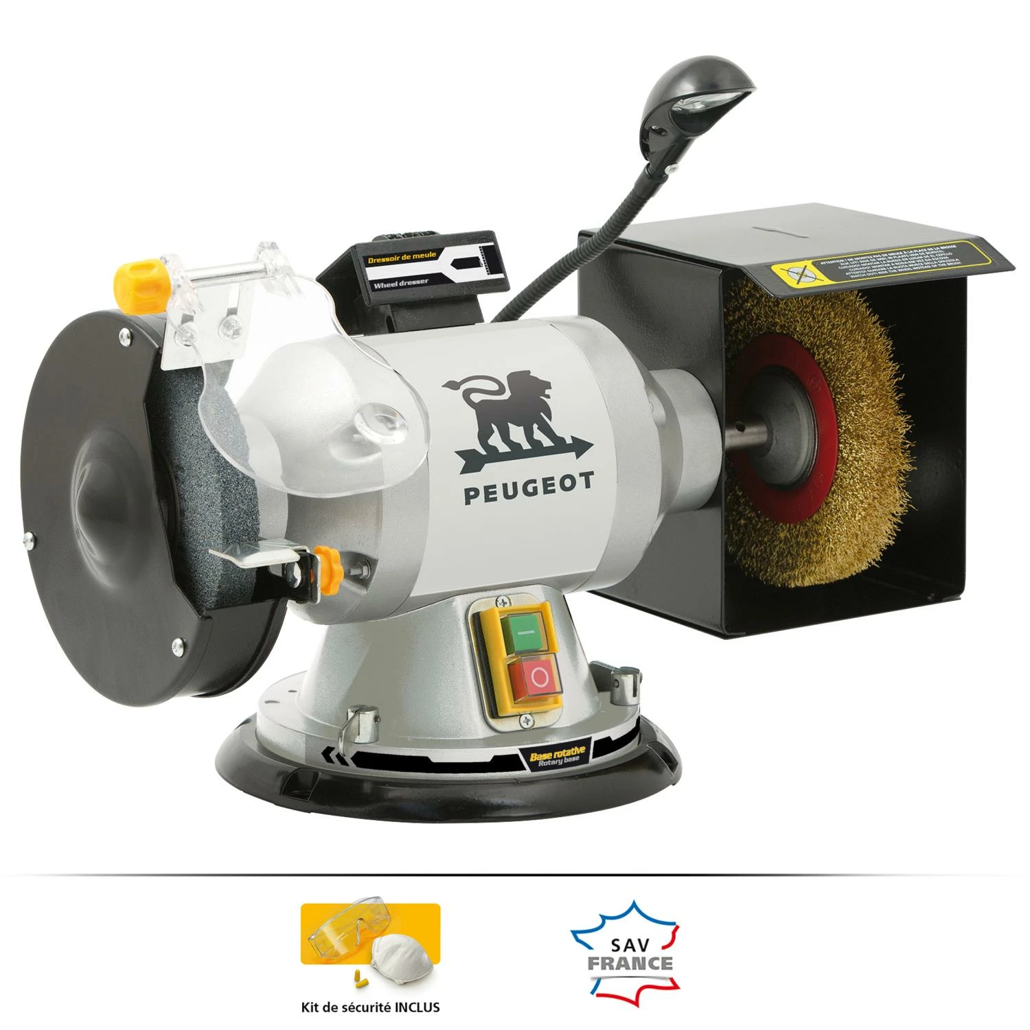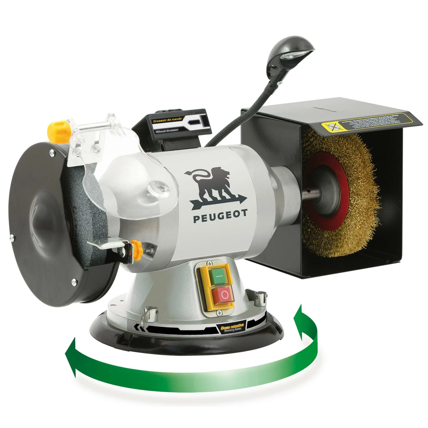 PEUGEOT ENERGYGRIND-150BP Touret à Meuler Pivotant 350W – Meule-Brosse pour Bois et Métal