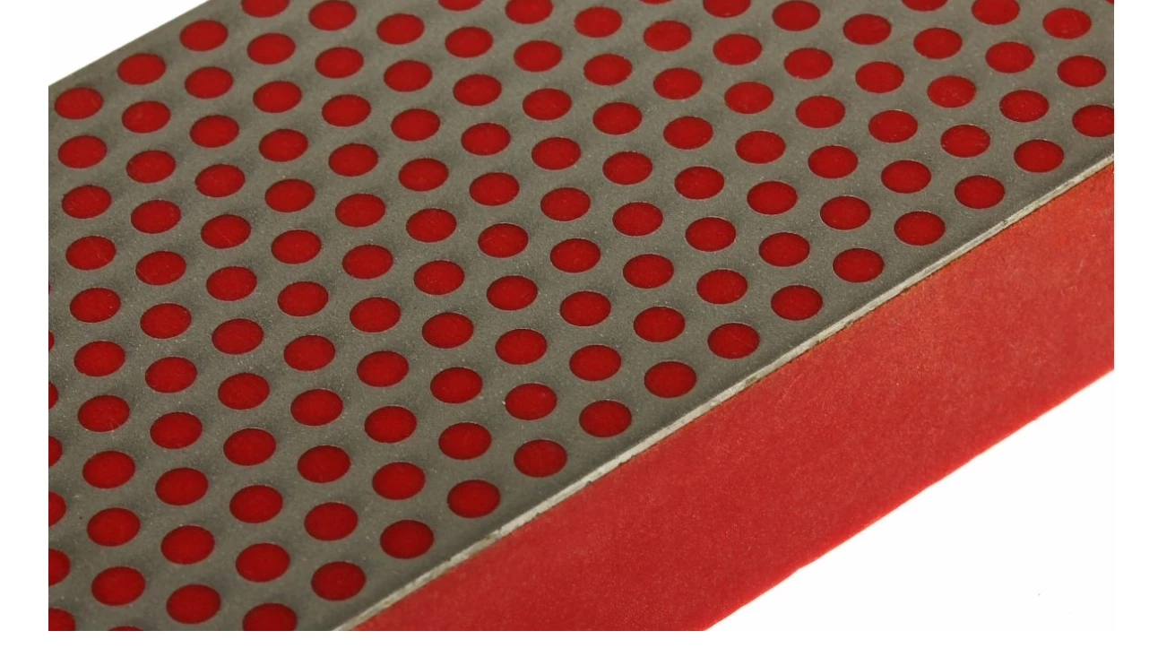 - Pierres de couleur rouge (grain 600-1000) : grains fins de dimension 25 microns environ. Idéal pour l’affûtage des outils tranchants régulièrement entretenus.