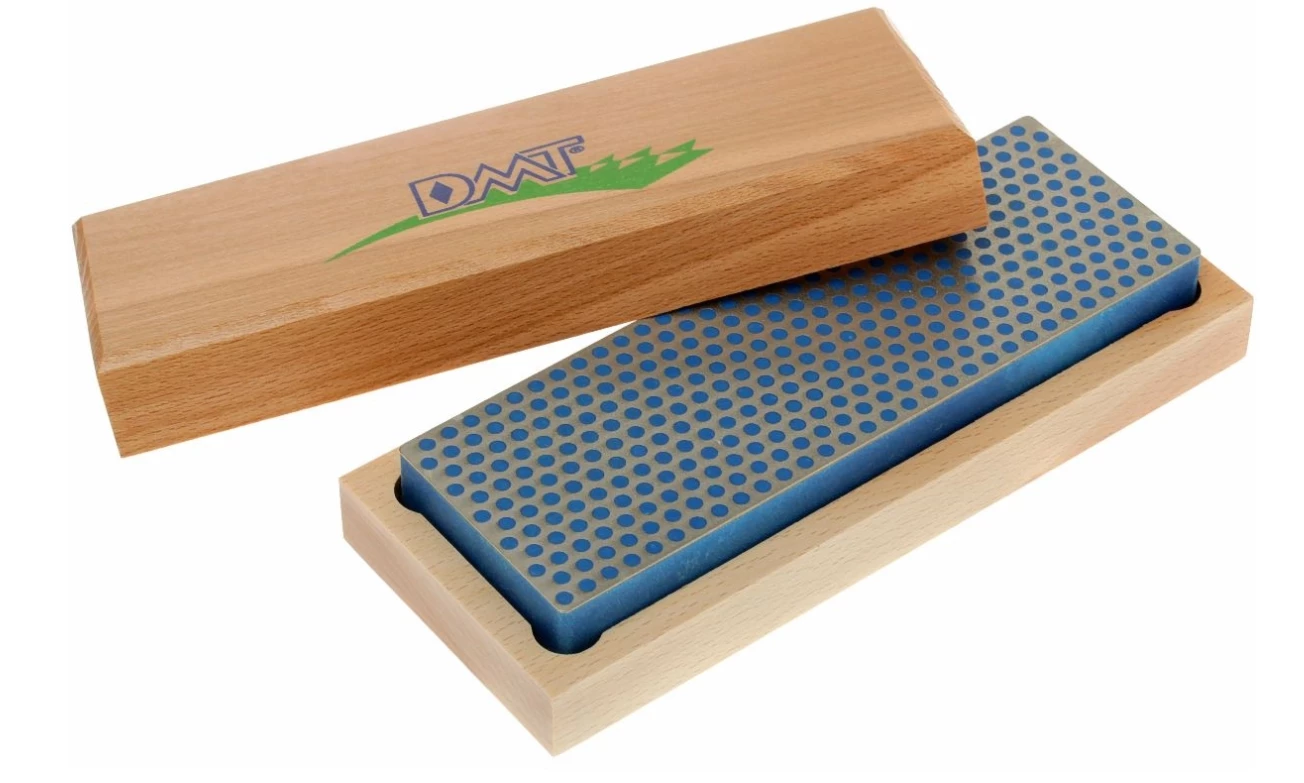 Les pierres diamantées DMT sont réputées pour leur rapidité d’affûtage et d’aiguisage. Cette société américaine n’utilise que des diamants industriels de type monocristallins, incassables, plus acérés et abrasifs, et également plus robustes à l’usure que les diamants polycristallins (composés de fragmentations cassantes et d’usure rapide), de qualité inférieure et qui sont utilisés pour les pierres bon marché. On savait que les pierres diamantées permettaient d’affûter en un temps record par rapport aux pierres traditionnelles, mais les pierres DMT s’avèrent même d’une efficacité largement supérieure à celles bon marché de provenance asiatique.