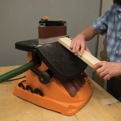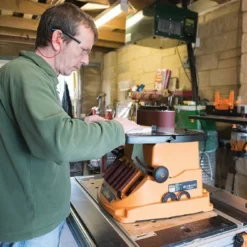 - La partie plane de la bande permet le ponçage de pièces droites jusqu’à environ 9 cm d’épaisseur
