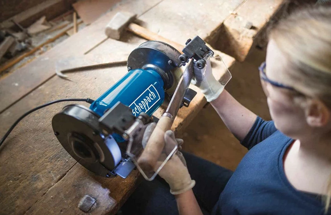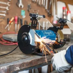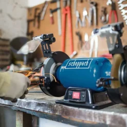 - Le touret Scheppach SM150LB est un outil polyvalent équipé d’une meule sèche de 150 mm et d’une brosse métallique, idéal pour l’affûtage et le ponçage.