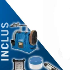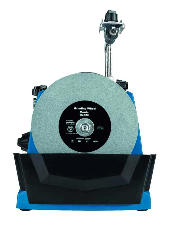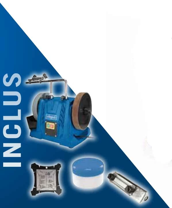 - Grand bac à eau incassable assurant un refroidissement régulier de la meule.
