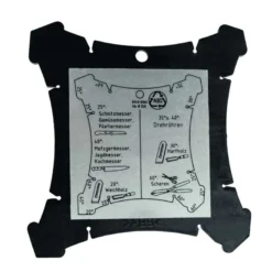 - Rapporteur d’angle pour régler l’angle d’affûtage correct.