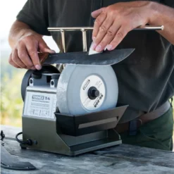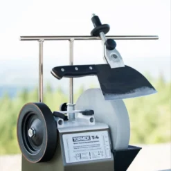 - Support universel prolongé pour affûter des outils longs, tels que des couteaux longs, des couperets et des machettes. Réglage micrométrique avec une échelle pour un réglage précis de l’angle du tranchant.