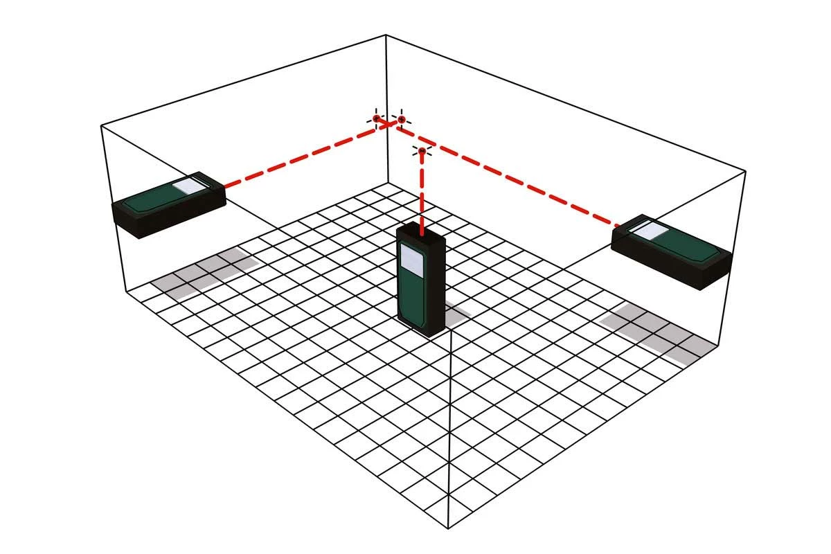 - Fonctions du laser : Longueur / surface / volume / Mesure continue (Tracking) / Pythagore 1 / Pythagore 2 / Minimum Tracking / Maximum Tracking