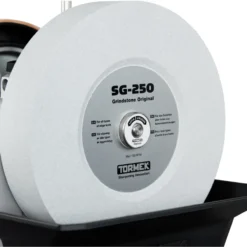 Le système d’entraînement caractéristique de Tormek est également mis en œuvre dans ce nouveau modèle. Ce système efficace parvient à maintenir une vitesse constante, même à pleine charge, une exclusivité des affûteuses Tormek. La meule d’origine Tormek SG-250 diamètre 250 mm affûte toutes les qualités d’acier, y compris l’acier rapide. Son puissant moteur CA est conçu pour entraîner la meule de grande taille en utilisation continue.