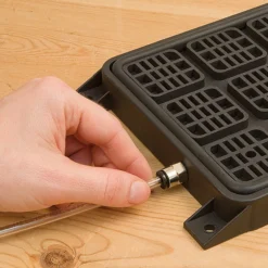 Embase du plateau pourvue de 4 orifices pour une fixation de l’appareil sur un établi ou tout autre support.